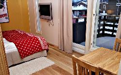 Week 9 in Åre Holiday Club State of the art double apartment on 111 square meters. Final cleaning, bed linen & towels, internet etc are included. High standard and decorated in light, Nordic style with tasteful design. The hall has a drying cabinet. Two bedrooms with double beds in each room. Bed sofa (130 cm) in the living room. Plus a studio 0f 25 square meters with double bed, own bathroom and pentry. A bathroom with shower, toilet, sauna and washing machine. A guest toilet with wc and wash basin. Large living room with living area, kitchen and dining area. Flat screen TV & DVD, and stove / fireplace (free firewood) and exit to the patio. The kitchen is fully equipped with cooker, fridge/freezer, microwave and dishwasher. Other: Telephone, hairdryer, wireless internet, cable TV, barbecue. Private ski storage room just outside the apartment. Parking. Bed linen, towels and final cleaning included. Smoking indoors is not allowed. Pets not allowed. Min.age for responsible tenant: 25 years. Check in at the reception Saturday from 16 o’clock. Check out the following Saturday by 10 am. The apartment is located next to the hotel Holiday Club hotel where restaurants, wellness, sauna world, fitness center, spa facilities, bowling, mini golf, and LAB with daily activities for children. Holiday Club is located at Åresjöns beach, about 200 meters from the railway station, big food storage, shopping and city center. Ski bus is available, or Dieses Objekt hat folgenden Komfort: