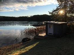 Ferienhaus mit Sauna und eigenem Strand am schönen See. Boot, Steg und große Veranda direkt am Wasser. Drei Kilometer zum malerischen Malmköping mit Café, Märkten, Museum, Apotheke und Gesundheitszentrum.