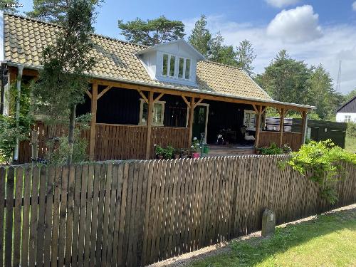 Strandnära mysigt hus, 150 m från stranden, renoverat under 2018. Alla moderna bekvämligheter med utedusch och två altaner med möbler.