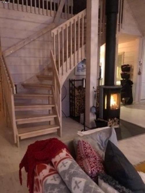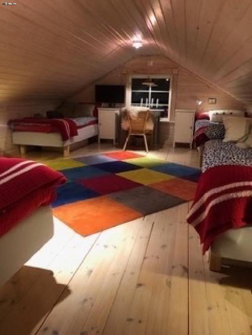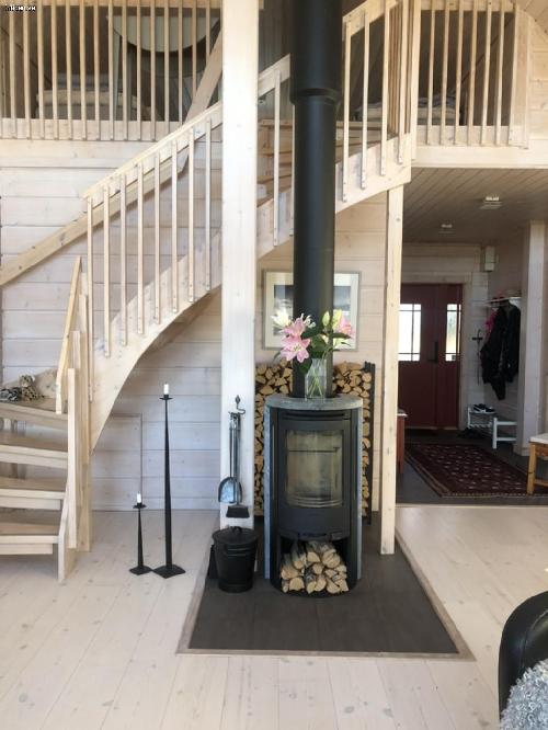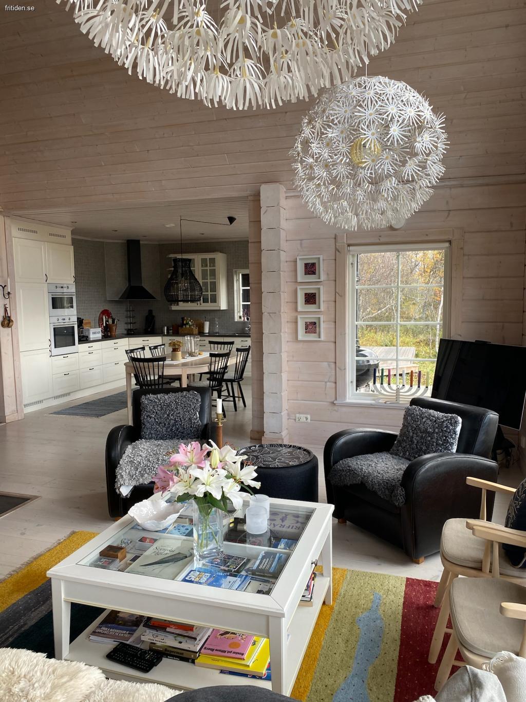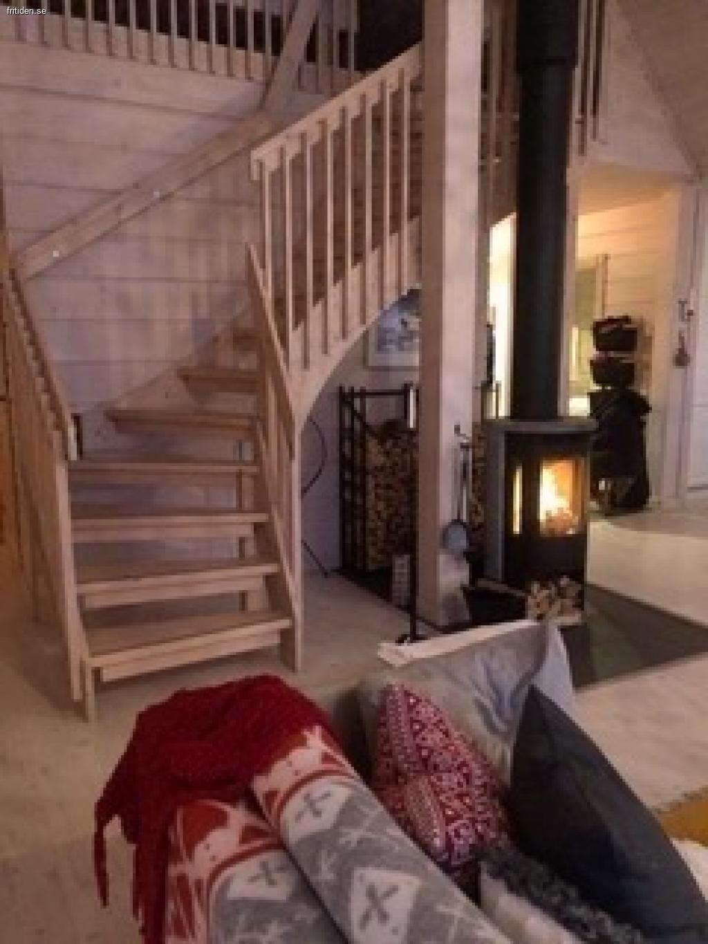 Det stora allrummet är öppet mot köket. I allrummet finns det braskamin. Det finns fiber indraget för trådlöst WiFi och tv med ett flertal kanaler samt Chromecast.