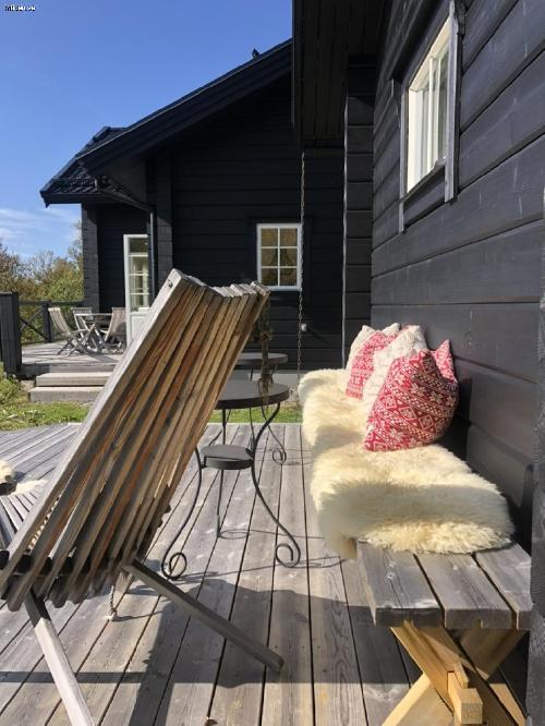 Vid garageväggen finns en mysig liten altan där man kan sitta och njuta av den fina utsikten.