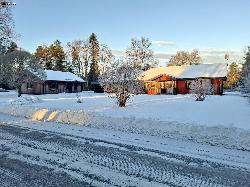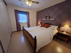 Villa with 4 bedrooms, large living room, kitchen, and bathroom, surrounded by a big garden with barbecue area. Located in Norrfors, a charming fishing village in Västerbotten, close to the Lögdeälven River with excellent swimming and fishing spots and beautiful hiking nature! Ideal for both summer and winter stays with plenty of seasonal activities: - Hiking - Swimming - Quad biking - Cross-country skiing - Alpine skiing - Snowmobiling - Moose farm - Beach - Rafting - Dog sledding - Canoeing The Villa This spacious single-story Swedish villa/bungalow offers comfortable accommodation for families or groups of friends. There are four bedrooms: - two large rooms (12 m²) with double beds, - one room (9 m²) with a double sofa bed, and - one room (8 m²) with a bunk bed. The large bathroom features a shower, sink, toilet, and changing table, plus there is a second toilet in the hall. The spacious entrance hall provides plenty of room for coats and shoes. The fully equipped kitchen has a dining table for at least 6 people, perfect for cooking and eating together. The living room is also spacious, with a cozy seating area, TV, and another dining table for at least 6 people, ideal for shared meals or games. The property has a very large garden of 3,000 m² with plenty of privacy, a grill/barbecue area, and a veranda/patio with ample seating, perfect for relaxing outdoors and enjoying the surroundings. This villa combines typical Swedish style with practical layout and plenty of space, making everyone feel at home. A perfect place for a relaxing holiday, summer or winter, in a charming setting. Guest access Guests have access to the entire villa/bungalow, so you can feel completely at home. Only one private storage room and the garage are not available. There is ample parking on the property for three cars, and a carport for one car is also available for guests. Other info The key to the property is stored in a lockbox next to the entrance door. Before arrival, you will receive a personal code for the lockbox, which is valid from the day of arrival until the day of departure. Upon departure, we kindly ask you to lock the house and return the key to the lockbox. Before arrival, you will also receive the WiFi details (guest network name and password). Broadband WiFi is available throughout the property. In the living room, there is a smart TV connected to WiFi, allowing you to cast from your own device. During the winter period, we kindly ask guests to use the entrance on the left side of the house. This entrance leads to a heated area where shoes can be put on and taken off and stored, helping to keep the house and floors clean. We also appreciate this during the summer. This object has these conveniences: