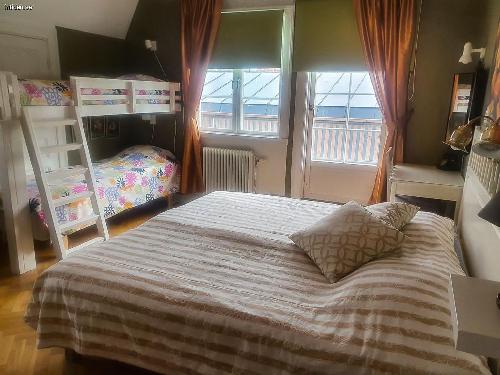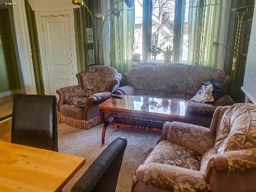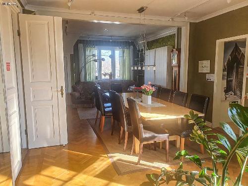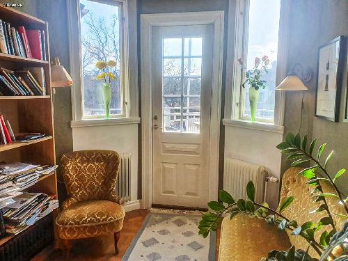 ...byggd 1915 mitt i idylliska Borgholms vackra, gamla badortskvarter med 100 m till Slottsskogens fina ströv- och promenadstigar. Mitt på den fantastiska ön Öland, Sveriges minsta och mest varierade(?) landskap. Säljes årsskiftet 2025/2026 eller 26/27. För den stora familjen eller två-/ tregenerationsboende? Ca 250 m till centrum, hamnen, förskolor upp till högstadieskola. 48 min med buss till Kalmars gymnasieskolor, var hel-/halvtimme. Huvudbyggnad: Två våningsplan á ca 160 m2,12 rum av varierande storlek, 2 kök, tre fantastiska, smyckevackra, renoverade kakelugnar, (måste besiktigas av sotaren före de tas i bruk igen), 2,7-2,90 takhöjd, fiskbensparkett, spegeldörrar, bastu i anslutning till ett av badrummen. Fyra separata entréer. BV:s kök stort och fullt funktionsdugligt men lite slitet. Treglasfönster med kulturglas på BV. Tidstypiska fönster finns till övervåningen men är ej monterade. Stor altan med kvadratisk grå och röd ölandskalksten, stor takterrass ovanpå, 2 mindre balkonger. Centralvärme med Luft/vattenvärmepump (möjlighet finns till fjärrvärme, anslutningsavgift betald sedan tidigare). Källare under del av huset.