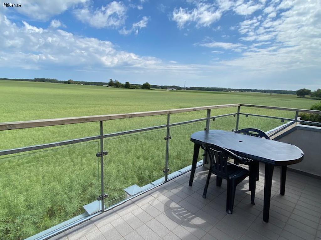 Del av nybyggt hus. Lägenheten färdigställdes 2006. Den är på ett plan och belägen en trappa upp med stor balkong (10 kvm) och avskildhet. Den vetter åt öst-syd-öst med en fantastisk utsikt, ro och soluppgång.