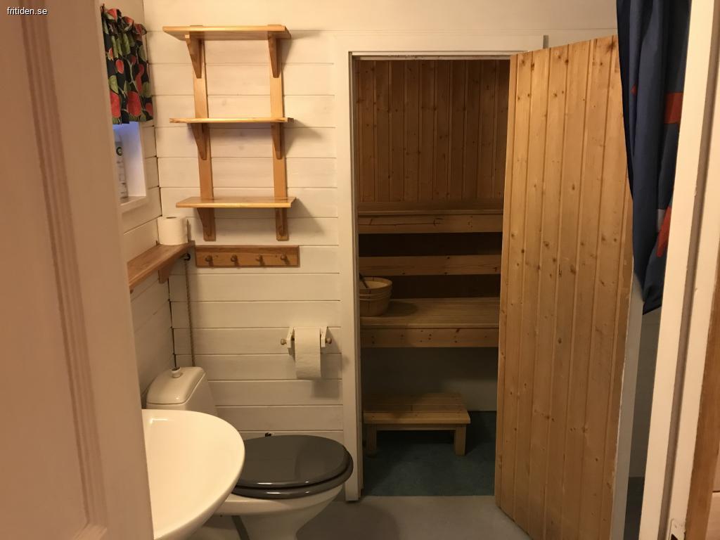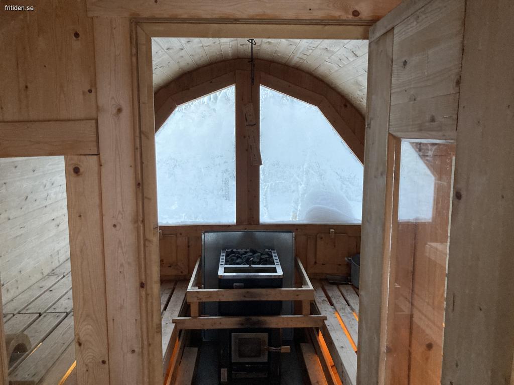 Vedeldad bastu finns och delas med gäster i den röda stugan.