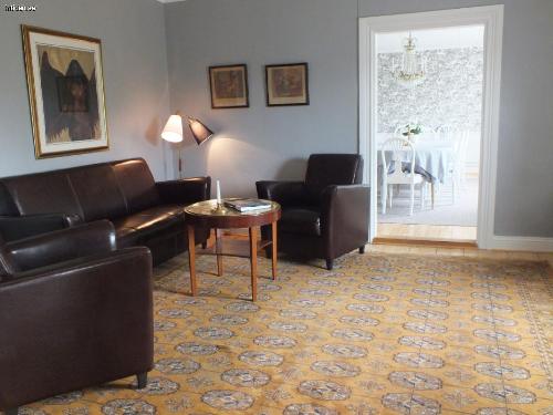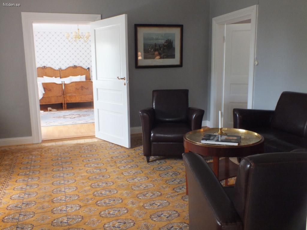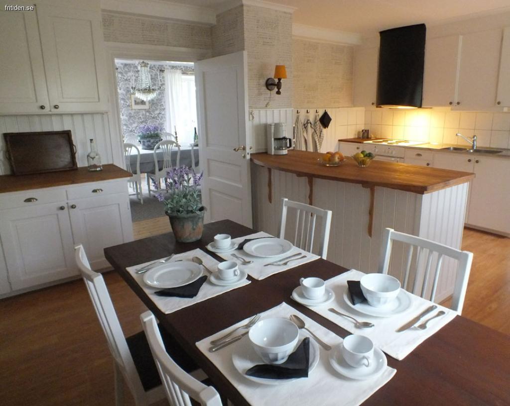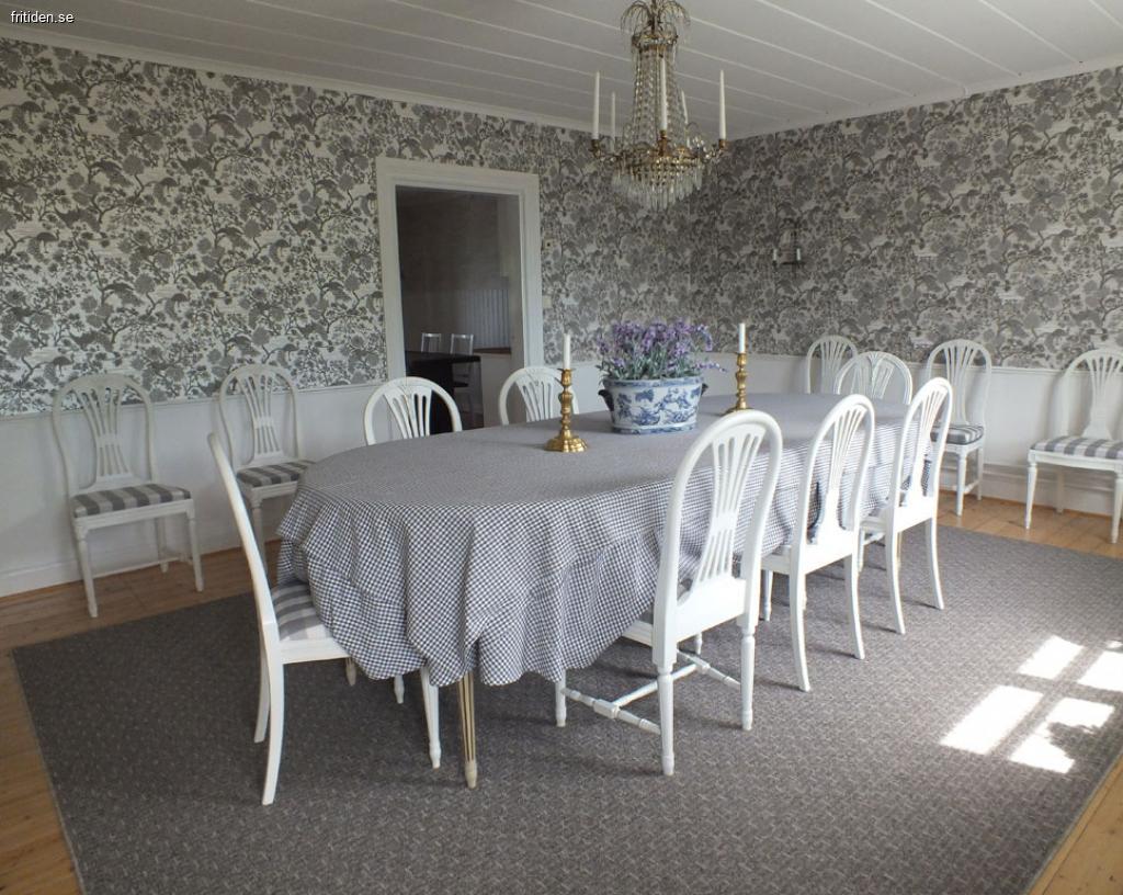 Huset ligger på ett högt berg med utsikt mot sjön. Här kan ni ha familjeträffar och och laga god god mat och umgås i fin herrgårdsmiljö. Det går bra att bara hyra en weekend för 8000 kr eller söndag till fredag för 8000 kr. Matsalen har plats för 14 personer och det finns möjlighet att hyra extra gästrum på gården.