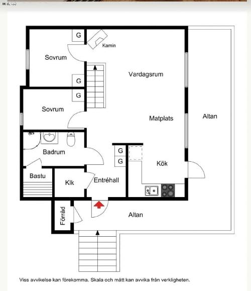 Torkrum, Braskamin, låsbart Skidförråd, Altan