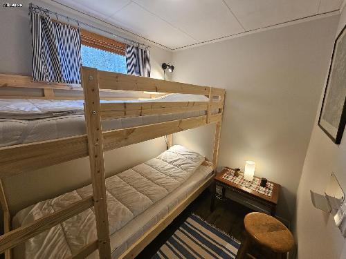 Man kan vara upp till 4 personer i stugan och en egen roddbåt, Wi-Fi och el ingår i hyran.