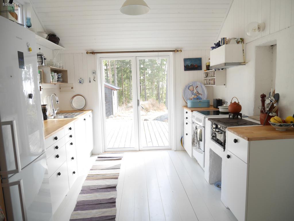 Kök utrustat med spis, kyl/frys, diskmaskin. Dörrar ut mot altan med utsikt över Ålands hav.