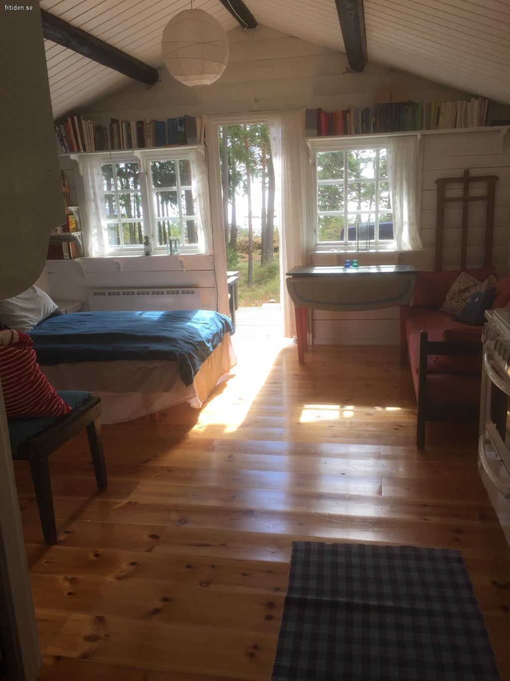 Annex: Litet sovrum med 2 sovplatser (sängarna kan sättas ihop) . Allrum med köksdel, säng för 1 person, soffa . Allrummet har dörr mot altan med utsikt över Ålands hav.