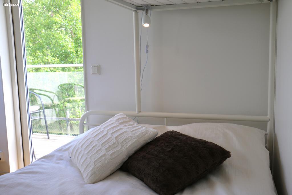 1 sovrum med dubbelsäng bakom draperi. Helkaklat badrum med wc, dusch, tvättmaskin och golvvärme. Huset har Wi-fi.