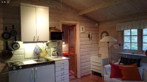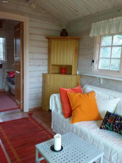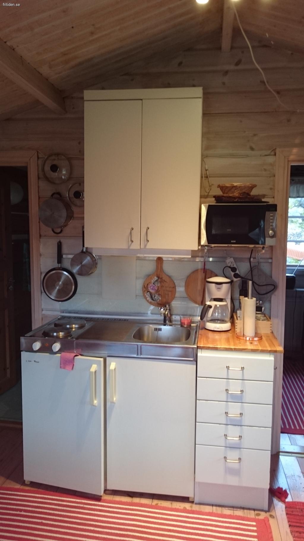 Stugan är på 27 kvm. Allrum med bäddsoffa m plats för två, matplats och trinettkök (två kokplattor, frysfack, kylskåp och diskho i ett) micro och vattenkokare samt utrustning för enklare matlagning. Ett separat sovrum med två sängar. Toalett med dusch. WiFi och TV