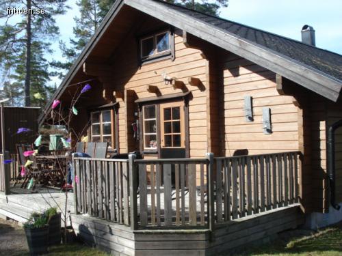 Timmerstuga ändå ute vid havet. Omgivningarna består av fritidshus på stora tomter i parkliknande område. Rikt djurliv t.e.x Älg, rådjur hare och även säl har synts i viken. Allmän brygga med iläggningsrsamp alldeles nedanför tomten. Härliga vandringsstigar utmed havet. Verandor med utemöbler för både morgon och kvällssol. Vissa veckor 6 dgr. (Prisavdrag)