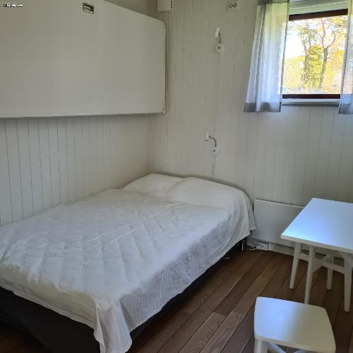 Stugan är 40 kvm med allrum/kök och två sovrum. Det finns fyra bäddar. Det större sovrummet har en dubbelsäng och det mindre en våningssäng, där undersängen är bredare.