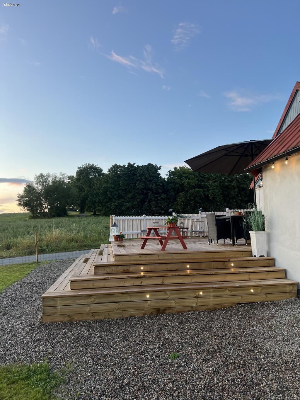 Ni är välkomna till ett hus med stor altan i syd/väst läge och med solnedgång över fälten. På altanen är det gott om plats för alla att trivas och platsen är utrustad med Sonos enkelt att koppla upp via deras app eller ex Spotify eller liknande.