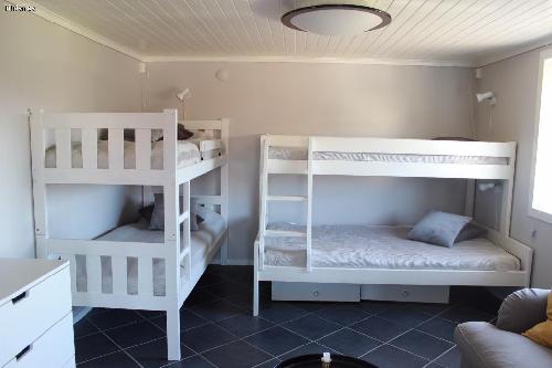Modern lägenhet i källarplan mitt på Smögen. Nära till sol och bad och den populära Smögenbryggan. Öppen planlösning. Sovrumsdelen med två våningssängar där en underslaf är 120 cm för två personer avskiljs med mörkläggningsgardin. Sänglinnen måste användas. Liten soffa med tv och fri WiFi. Toa med dusch.