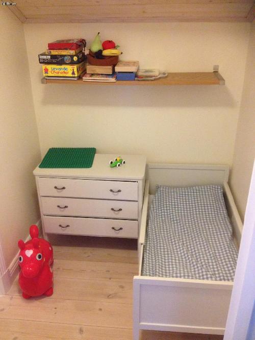 2 sovrum (1.med dubbelsäng), allrum med bäddsoffa för 2, v-rum med braskamin, tvättstuga (med tvättmaskin), 2 st wc varav ett med dusch, finns även barnsängar (utdragbara 3-4 år).