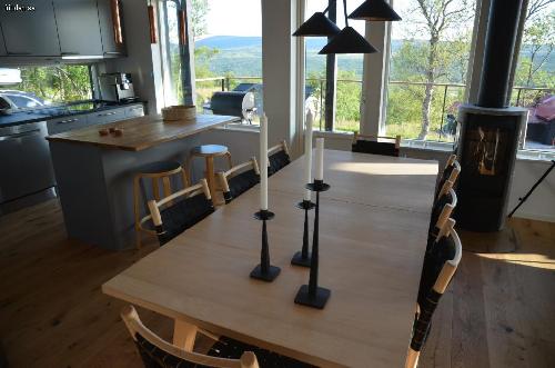 Boendet är 120 kvadratmeter med storstuga och helt inrett loft, har bästa solläge med en fantastisk utsikt mot Rödfjället, Hamrafjället och norska Storvigeln. Sol från morgon till sen kväll från stor altan under tak.