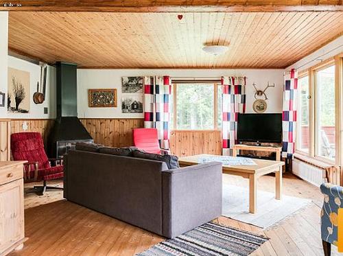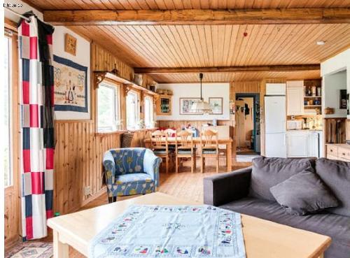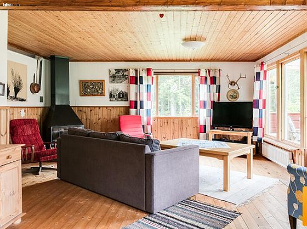 En storstuga på 72 kvm med öppen spis, soffa + fåtöljer, stort matbord och kök där man kan laga det mesta. En toalett med dusch samt två sovrum med plats till 4 personer.