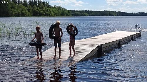 Ett härligt ställe för avkoppling, lek med barnen, skogspromenader och antingen längdskidor på vintern eller bad i de många sjöarna som ligger från 3 km till 10 km på sommaren. Skogen finns precis utanför den stora tomten i Hallaboda, 6 km från Häradsbäck och 25 km från Älmhult i Småland.