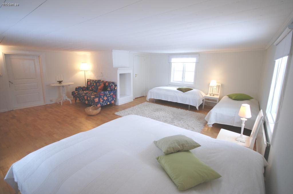 På ovanvåningen finns ytterligare två sovrum som är ca 30 m² respektive 20 m² stora. Det ena rummet rymmer 4 och det andra 2 sängplatser (det finns även en babysäng till förfogande). Alla sängar är utrustade med täcken och kuddar.