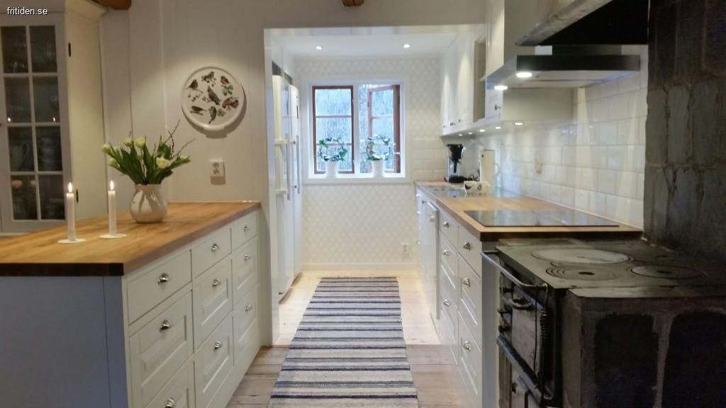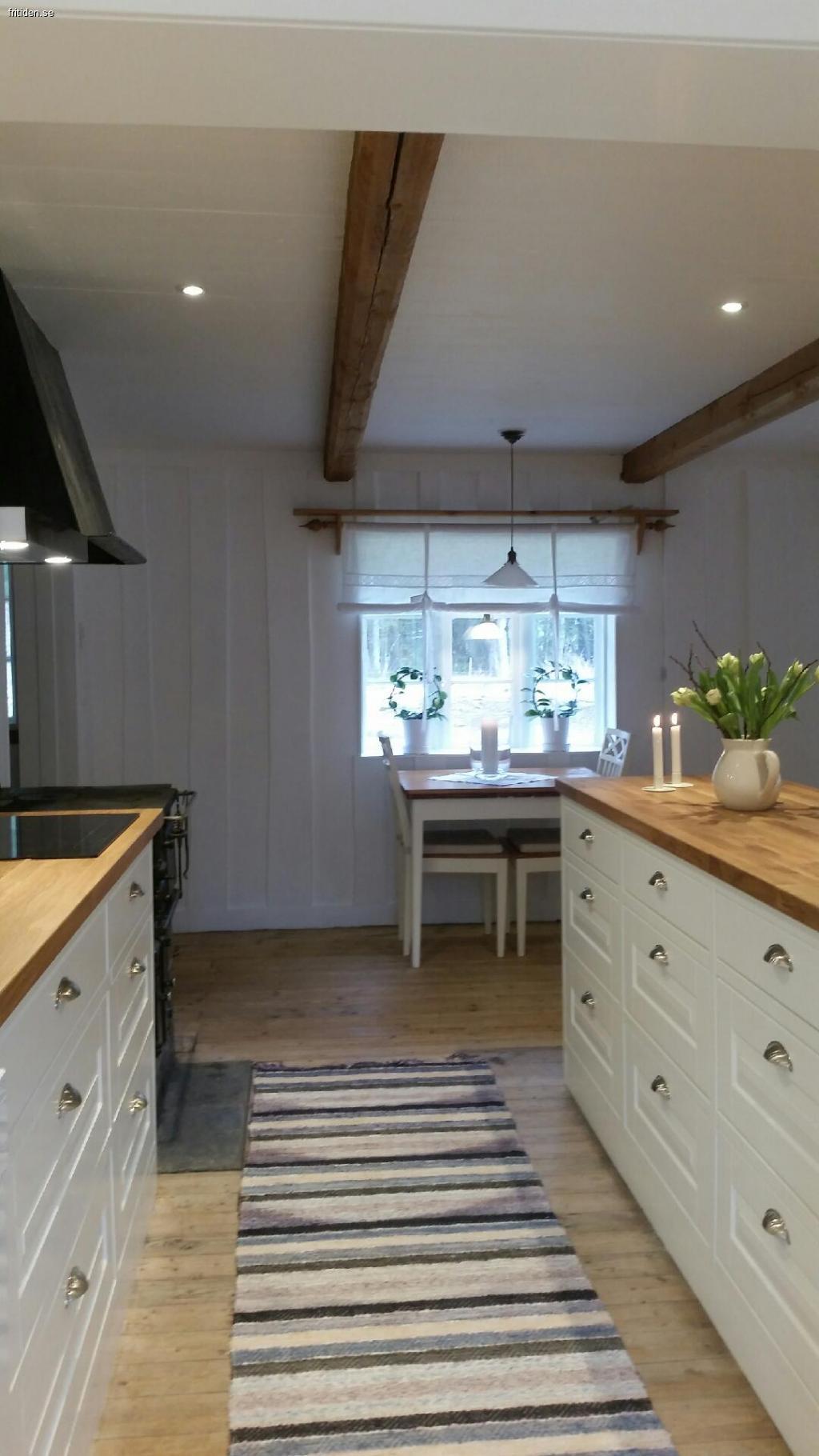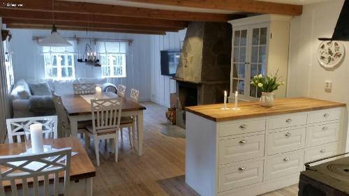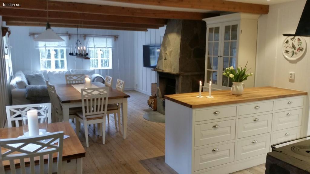 Huset är ett charmigt och mysigt litet torp på 60kvm med en veranda framtill. Huset består av ett stort vardagsrum som innehåller en 55 tums ledtv, hörnsoffa, stort matbord med plats för 6 pers + ett mindre matbord med plats för 2 pers, vitrinskåp och en braskamin. Här kan du njuta av en mysig värmande brasa framför kaminen. Vardagsrummet har en öppen planlösning ihop med köket som är fullutrustat och innehåller allt som du kan tänkas behöva, stort kyl o frys, inbyggnadsugn och micro, spis, diskmaskin, kaffebryggare och allt husgeråd som behövs. I köksskåpen finns Rörstrands trevliga "Mon Amie" servis för lite extra vardagslyx och i vitrinskåpet finns finservisen och finglasen för att sätta lite extra guldkant på semestern. En trevlig gammal järnspis förgyller köket, men denna får dock inte eldas i.
