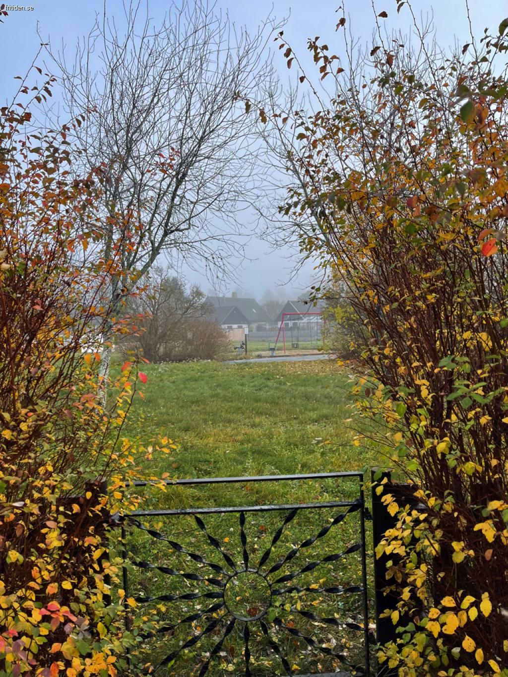 Villan är omgiven av en uppvuxen trädgård utan insy. Baksidan vetter mot en park som kringgärdas av kvarterets villor vilket skapar en trygg lekplats.