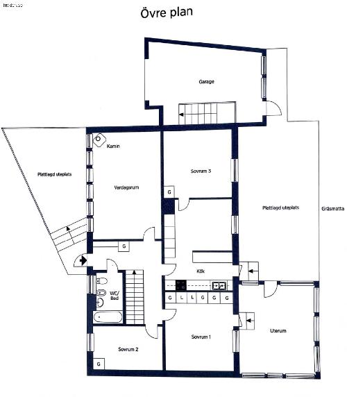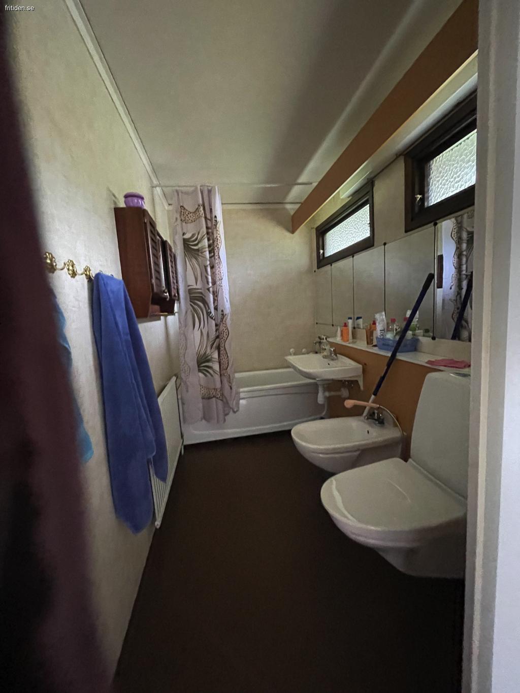 Huset har även en nedervåning med ett stort sovrum, gillestuga, badrum och tvättstuga.