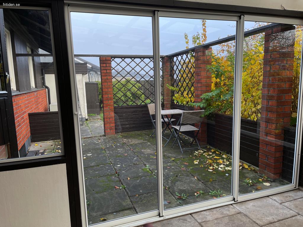 I entré plan finns badrum, nyrenoverat kök med terassdörr mot uteplats, stort vardagsrum med TV, kök och tre sovrum. Det största sovrummet har en dubbelsäng och terassdörr mot det inbyggda uterummet. Huset har två badrum med var sin toalett och badkar respektive dusch.