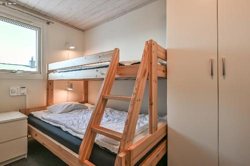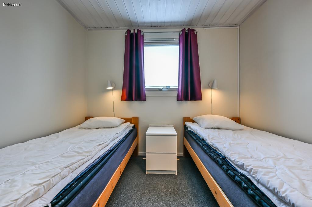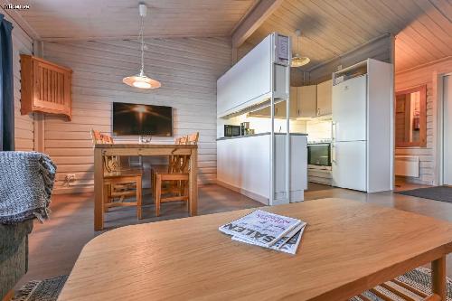 Här har vi en stuga på 4+2 bäddar med två sovrum och öppen spis.