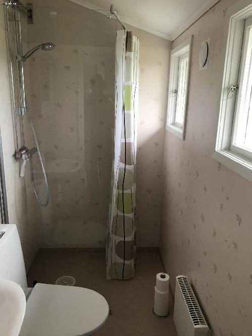 Wc, dusch, mikro, tvättmaskin, TV och trädgårdsmöbler.
