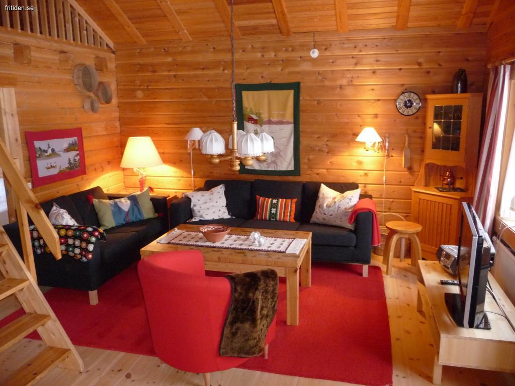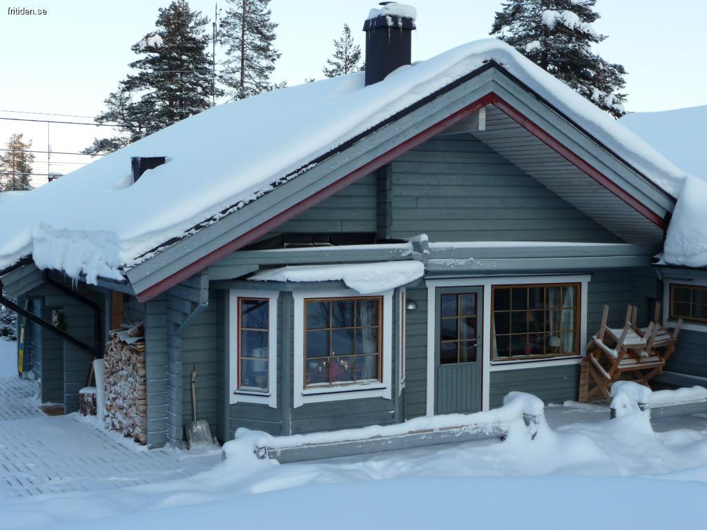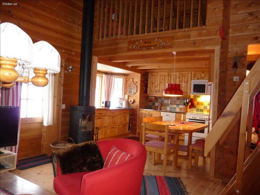 Charmig timmerstuga i Gubbmyren med utsikt över Lindvallens och Sälfjällstorgets skidbackar.