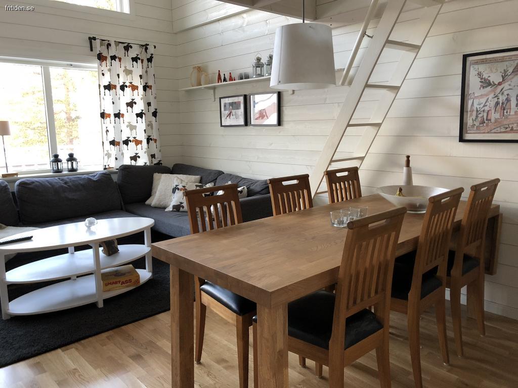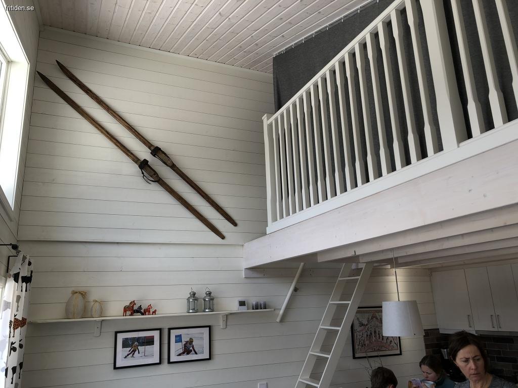 Övervåning som är helt nyrenoverad. Bastu finns. Ett sovrum med två våningssängar, ett sovrum med en dubbelsäng och en enkelbädd ovanför. Sovloft med 1 dubbelsäng. Totalt 3 sovrum. Vi har två likadana stugor i samma område som ligger nära varandra, det andra huset har 7 bäddar + 2 bäddsoffor i allrummet. Båda är övervåningar. Ej djur eller rökning inomhus. Uthyres veckovis eller del av vecka. 50 meter till lift och skidbacke.