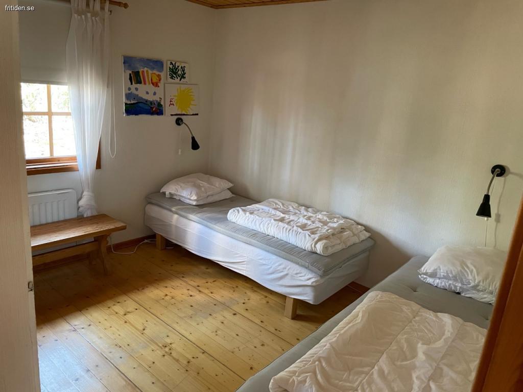 Vi erbjuder 6 bäddar fördelat på en stuga och en mindre gäststuga. I huset möts ni av ett öppet vardagsrum och kök med fantastisk havsutsikt, där finns öppen spis, matplats och soffhäng. Huset har också en toalett med dusch samt två sovrum. I anslutning till stugan finns en mindre gäststuga med två sovplatser. Det finns två uteplatser där du kan njuta av solen från tidig morgon till dess att den går ner i havet bakom Blå Jungfrun på kvällen.
