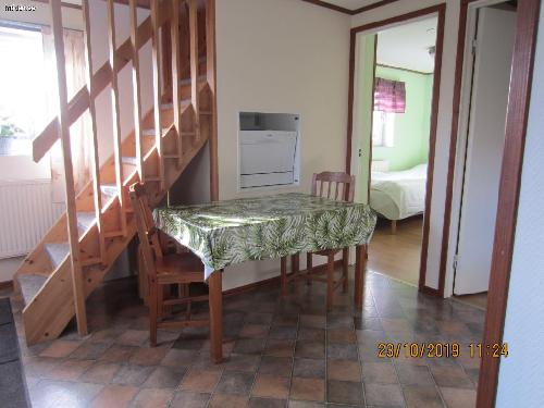 Finns ett litet köksbord. Är ni många finns det ett större matbord på övervåningen.