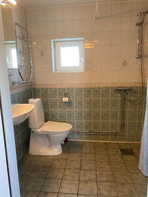 Toaletten: är inredd med kakel & Klinkers. Golvvärme och elektrisk handdukstork.