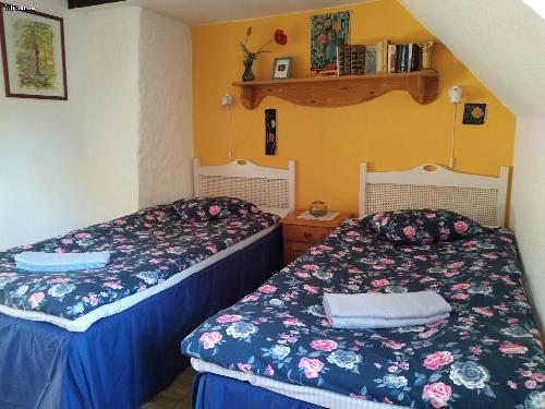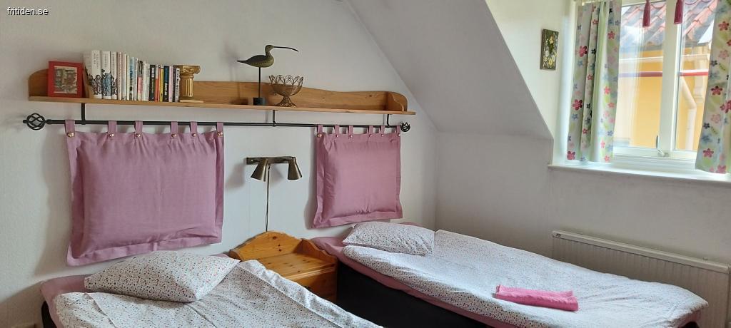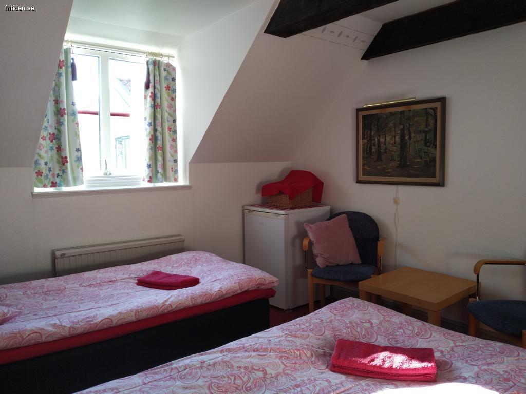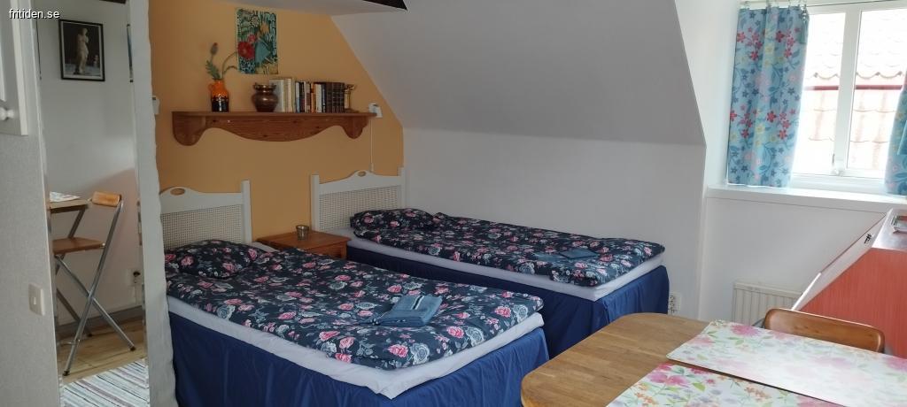 TVÅ DUBBELRUM för optimalt fyra gäster. Rummen ligger på andra våningen intill varandra med egen ingång från innergården på Skogränd 1