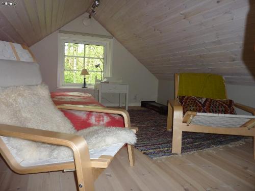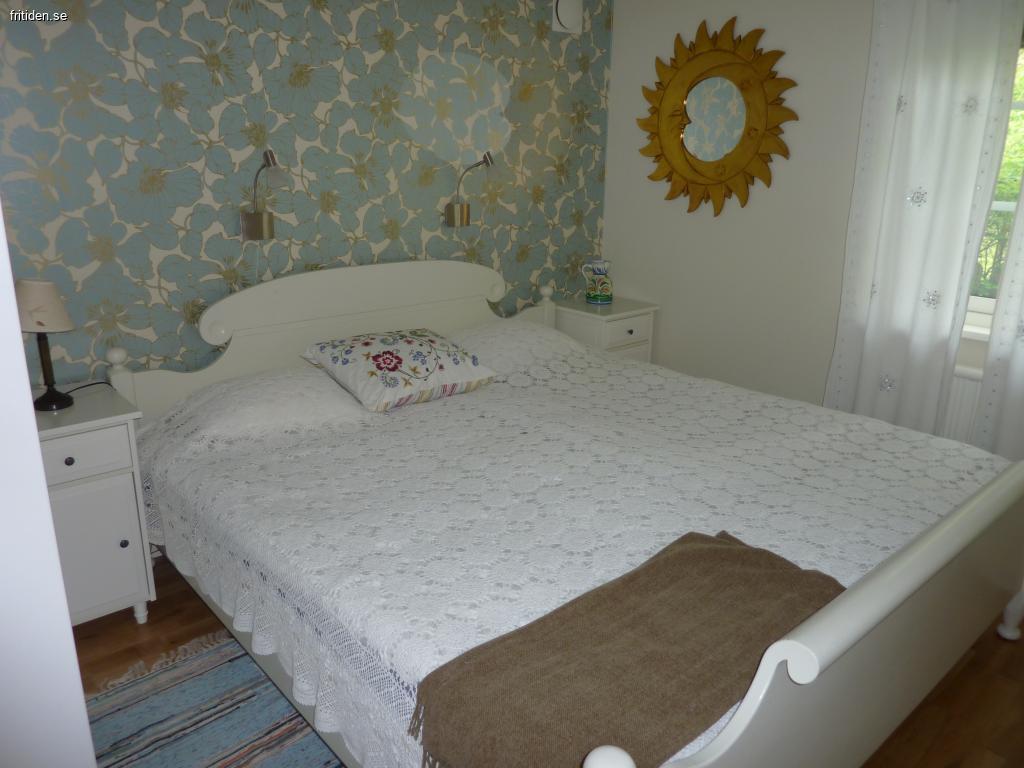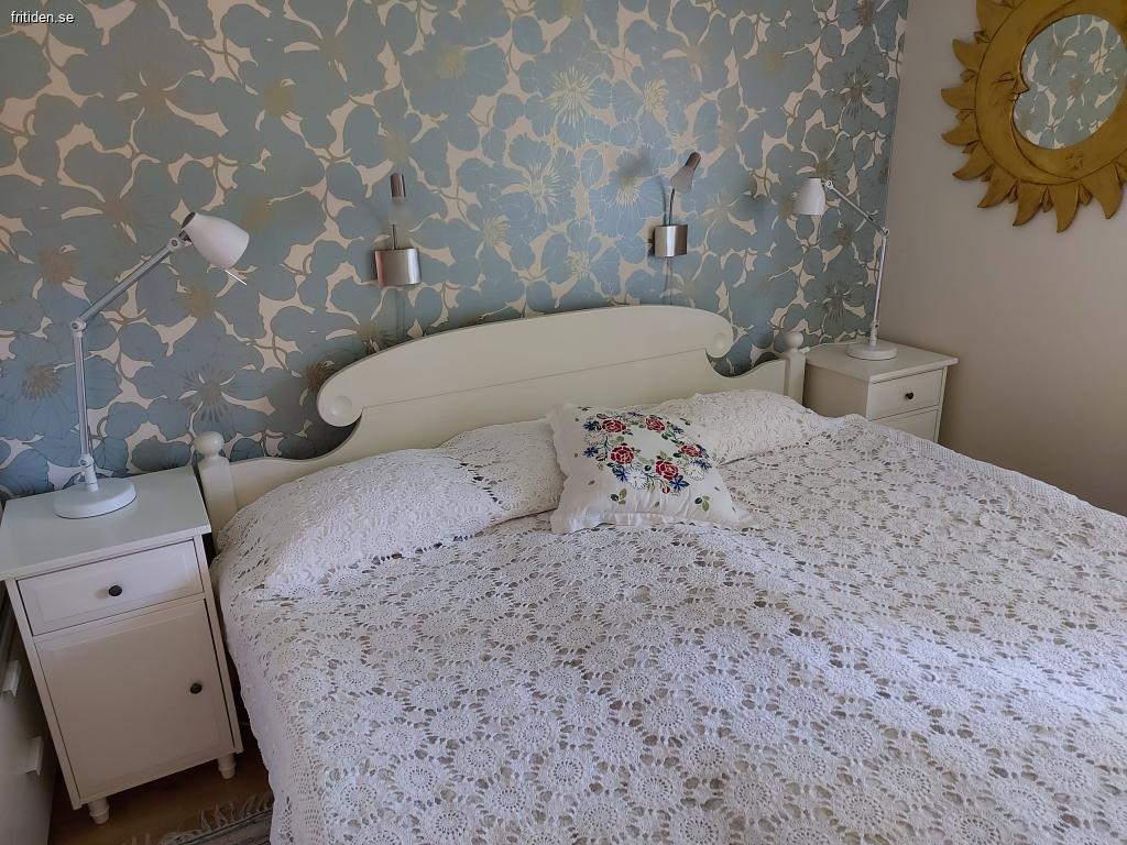 Det har två sovrum på nedre våningen. Ett större med ny dubbelsäng ett mindre med våningssäng. Båda med garderober. På loftet finns en dubbelbädd där finns också TV med fåtöljer. Vi har fiber uppkoppling och Apple TV med alla kanaler.