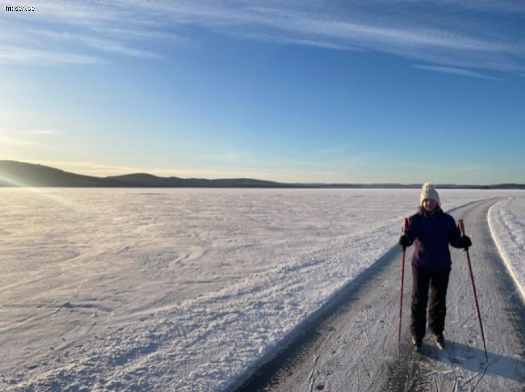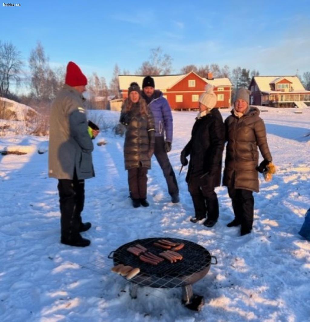 Pimpla på isen. Åk skridskor eller skidor på isen, fina skidspår och om snön tillåter, ”tefatsåkning i vår ”rodelbana” ner mot älven.
