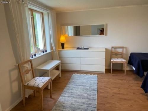 Vårt nyrenoverade boende erbjuder en ljus och inbjudande atmosfär med 4 bäddar fördelade på två rum. Ett sovrum med 2 st 90-sängar och egen toalett, samt ett rymligt vardagsrum med en soffgrupp och en dubbelsäng. Vi har en spjälsäng och extrabädd att hyra för 100 kr vardera oavsett periodlängd.