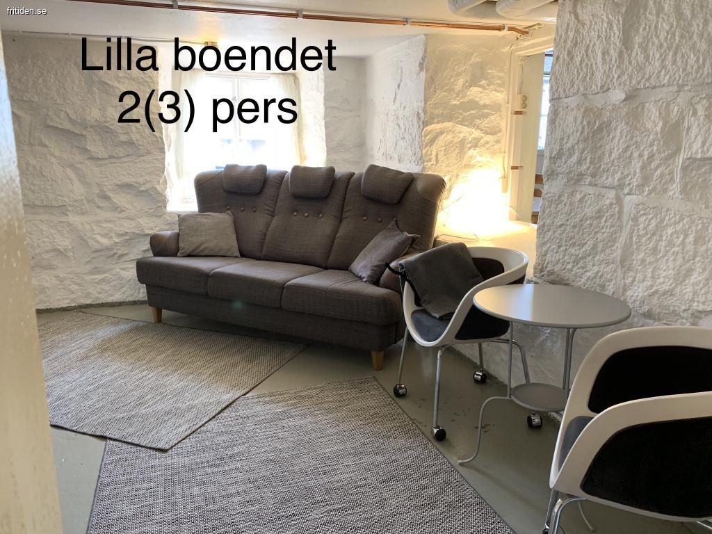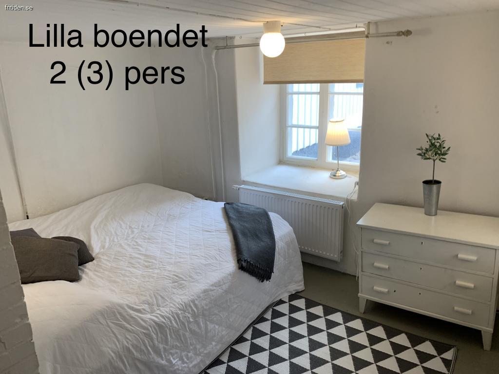 I huset finner du 2 st olika boenden. Antingen bokar du plan 2 och 3 som är ca 150 m2 och rymmer 8 personer eller lägenheten i bottenvåningen som rymmer 2 personer. (3 med extrasäng mot avgift).