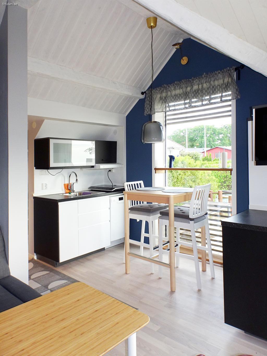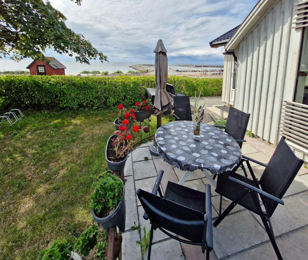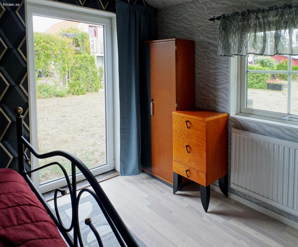 Det nödvändigaste finns som; 2 rum (inkl kök). Kök integrerat med allrum, toalett med dusch, 2 bäddar (dubbelsäng). Kök med spishäll, mikro, vattenkokare, kaffeapp. TV (telia baspaket). Terrass i västerläge komplett med trädgårdsmöbler, solstolar, dynbox, parasoll samt grill. Endast ca 50 m till badstrand. Njut av att sitta på terrassen och se de fantastiska solnedgångarna eller titta på båtlivet i hamnen.