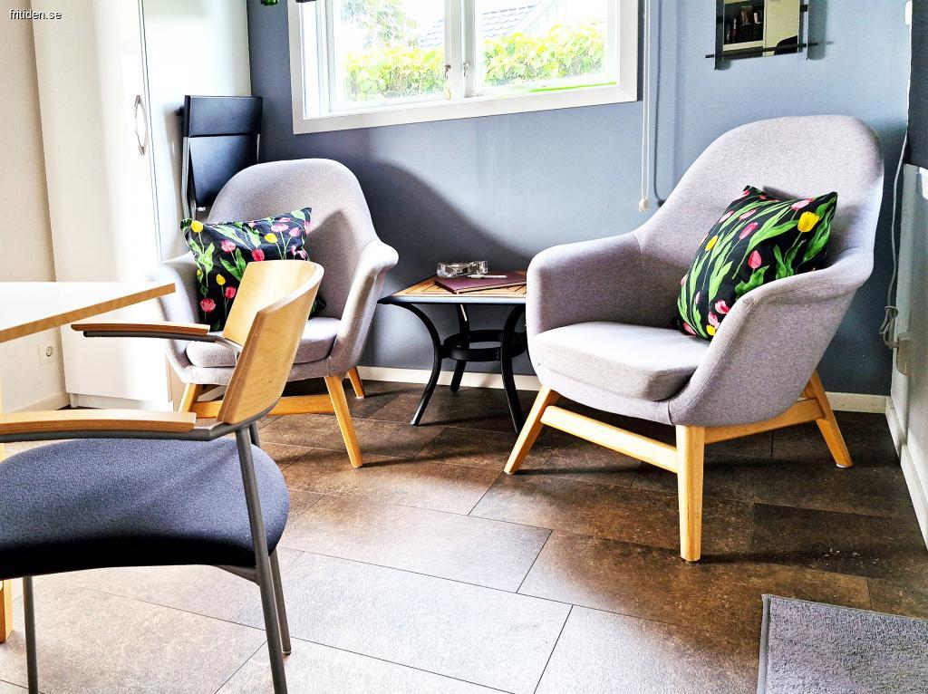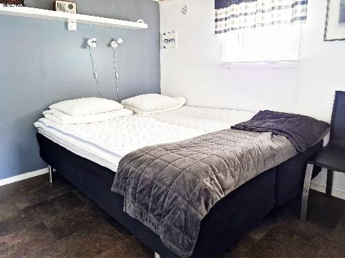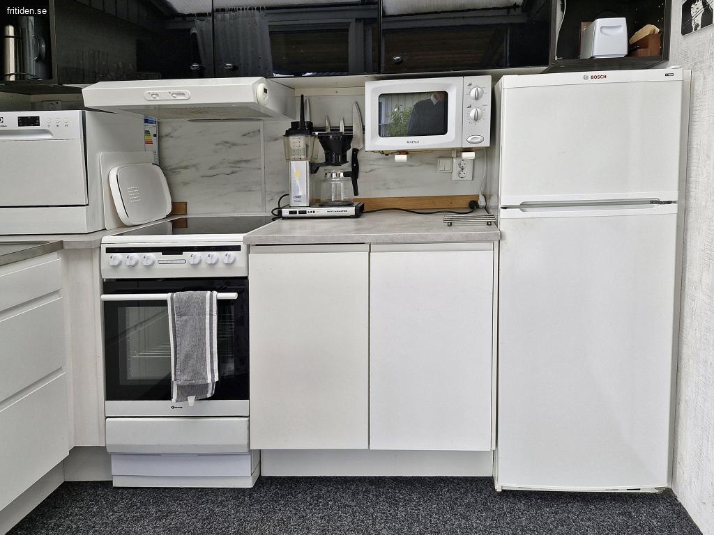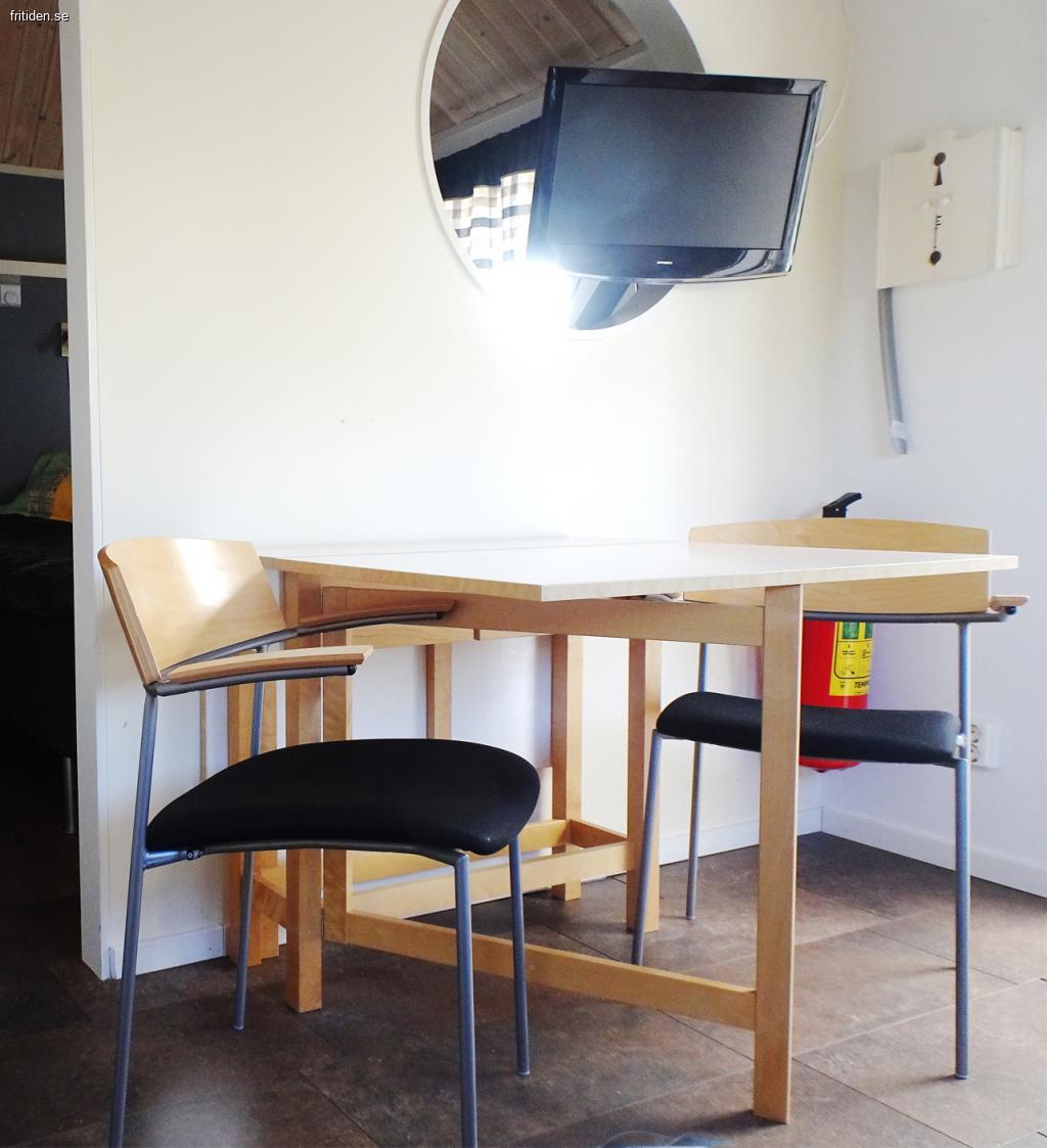 Det nödvändigaste finns som; 2 rum (inkl kök). Kök i anslutning till altanen, toalett med dusch, 2 bäddar (dubbelsäng 160cm). Kök med spishäll, mikro, vattenkokare, kaffeapp.TV, Internet.