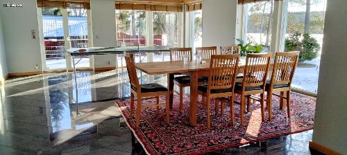 Två sovrum, fyra sängar. Ytterligare sängar finns vid behov. Öppen planlösning med stort kök, kaffemaskin och diskmaskin. Matbord med plats för åtta personer.