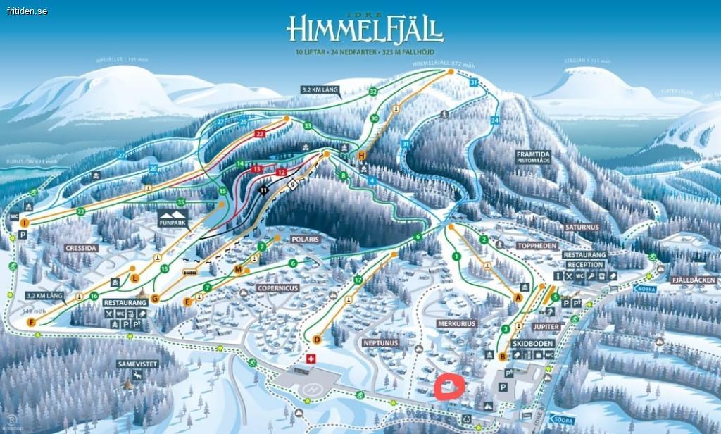 200 meter till lift och längdspåret "Himmelfjäll runt" kliver man på precis nedanför stugan. Gångavstånd till skidhyra och restaurang- Renen och älgen. I Idre finns de tre skidanläggningarna Idre fjäll, Idre Himmelfjäll och Fjätervålen. Idre Fjäll når man med bil på några minuter medan det tar ca 20 min till Fjätervålens liftsystem. Vill du låta bilen stå är skidbussen ett alternativ. Skidbussen är gratis och trafikerar de tre anläggningarna hela dagarna under vintersäsong.