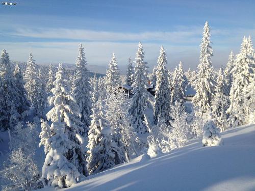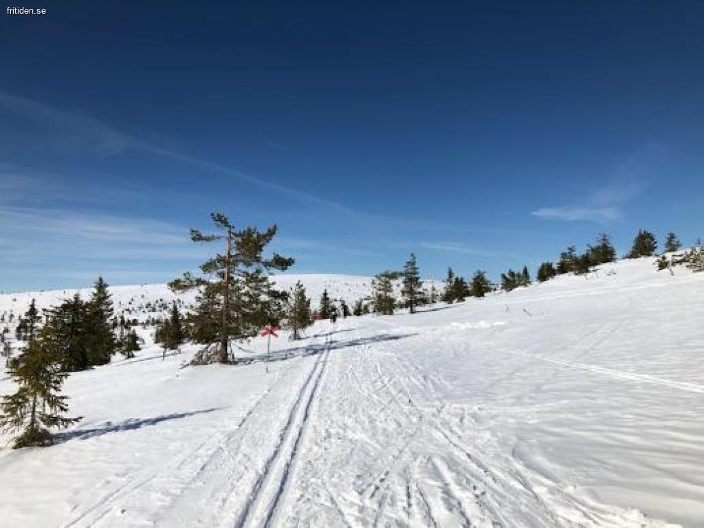 Längdskidspår och rösade leder "runt knuten" och 2,5 km till närmaste lift och affär.