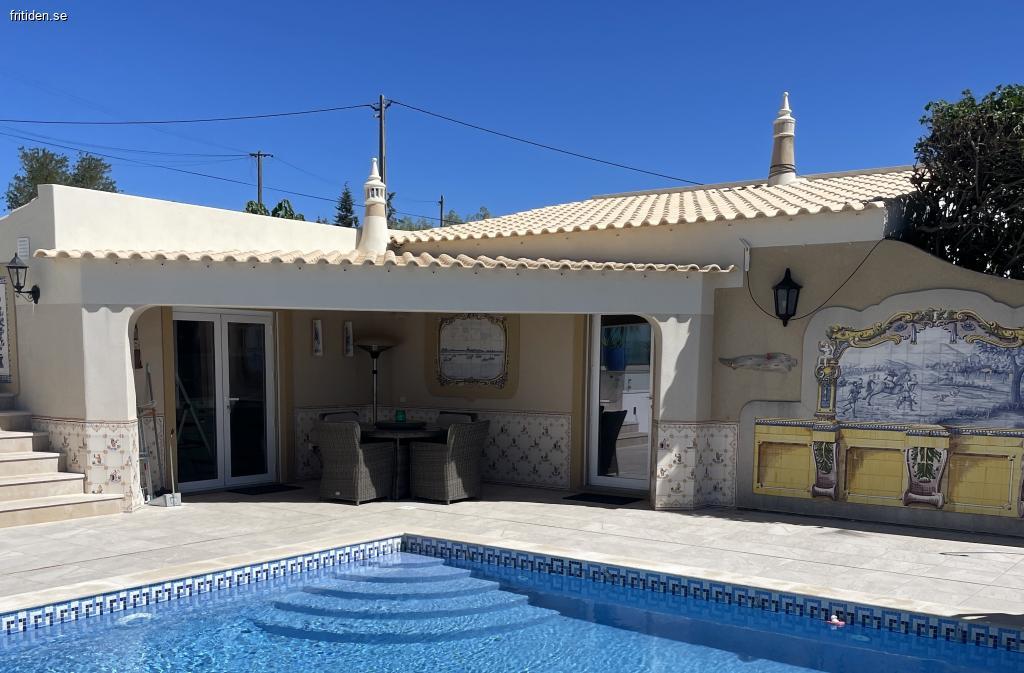 Välkomna att hyra vårt fina pool/gästhus. Huset är nyrenoverat och ligger nära stora fastigheten där vi två personer bor men jag tror inte vi kommer störas av varandra. På bilderna ser man den uteplats som ligger nära poolen sedan finns en mindre på baksidan av huset där man kan vara helt privat. Gästhuset består av ett fullt utrustat arbetskök ,nya maskiner ,stort kyl och frys samt vinkylskåp, badrum har dusch. Det stora rummet är möblerat med en dubbelsäng (180cm) går att dra isär lite om man flyttar sängborden ,soffa och soffbord och två fåtöljer, matbord och vägghängd tv. En öppen garderob med gott om plats.