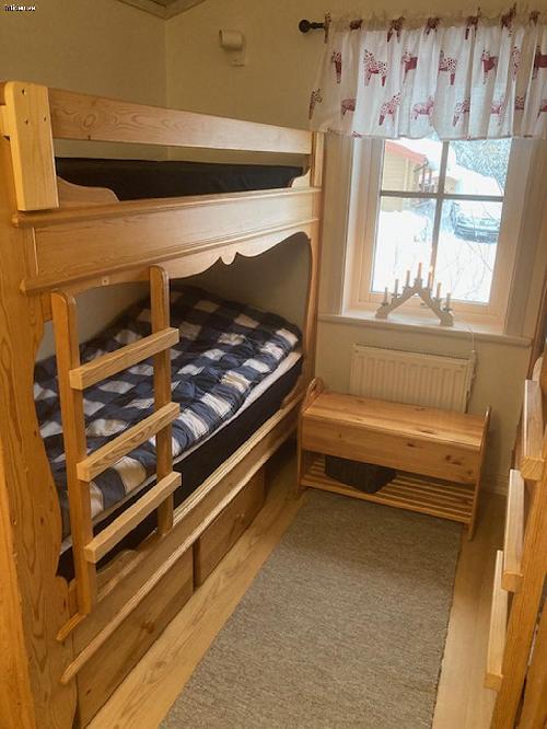 Det finns 6 + 1 bäddar. Ett sovrum har en dubbelsäng med 2 sängplatser + extra vägghängd säng. Det andra sovrummet har 2 st våningssängar med 4 sängplatser.