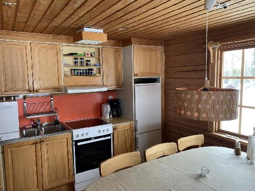 Köket : diskmaskin, ny spis med induktionshäll och ugn (barnlås), kyl och rejäl FRYS, mikro, kaffebryggare, våffeljärn, brödrost, vattenkokare mm. Torkskåp finns.