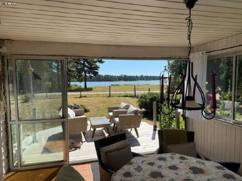 Välkommen till ett charmigt och mycket hundvänligt boende med inhägnad tomt och egen roddbåt vid privat brygga, bara 80 meter från huset! Obruten havsutsikt från vardagsrum, matrum och inglasat uterum.